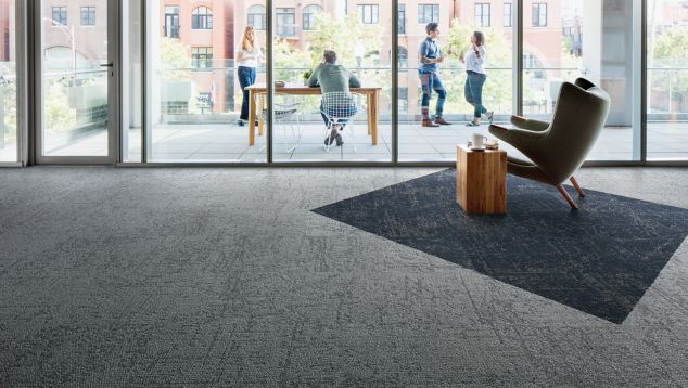 CARPET: Ice Breaker, Quarry, Pattern by Tile; LVT: Textured Stones, Cool Polished Cement, Non Directional