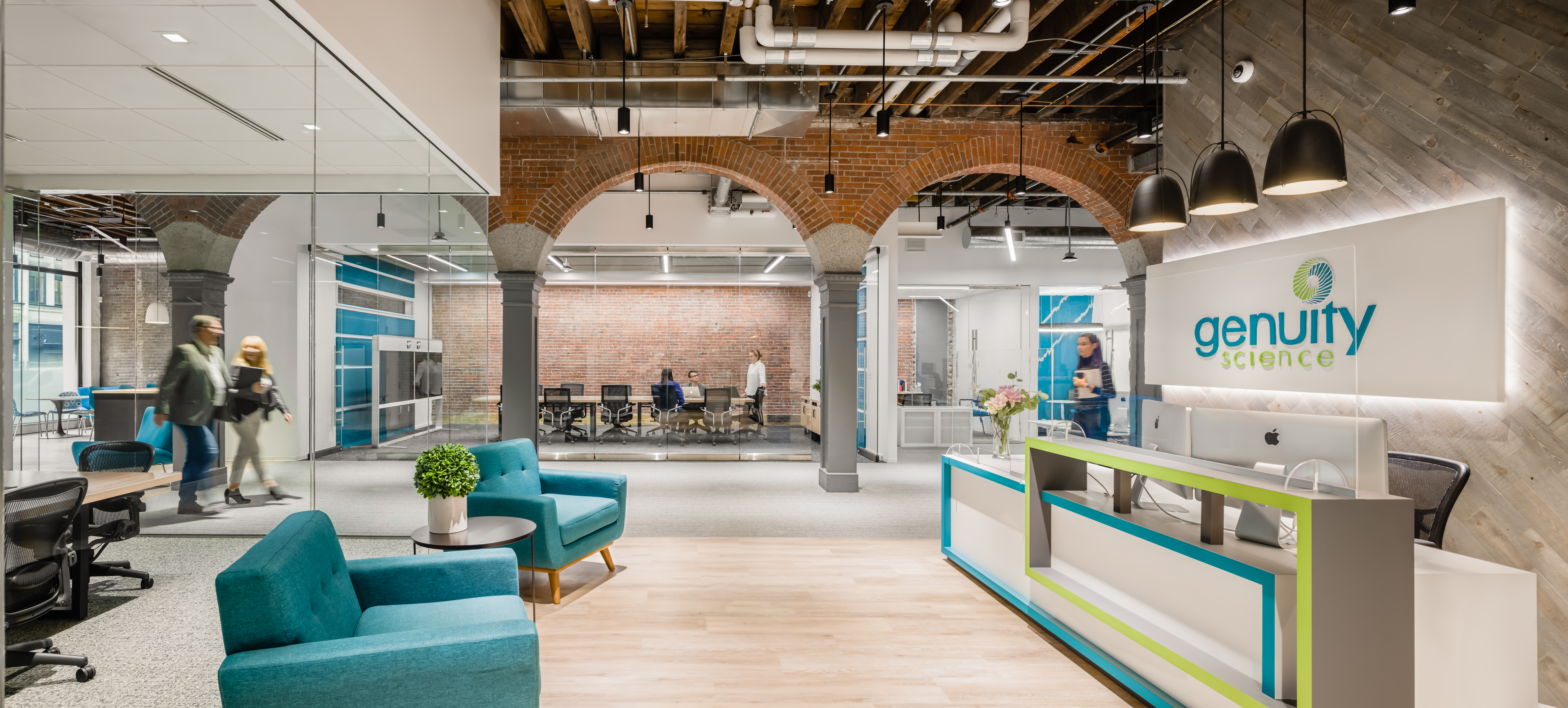 Location: Genuity Science in Boston, MA; LVT Product/Color: Textured Woodgrains in Antique Light Oak; CARPET Product/Color: WW860 in Linen Tweed; Architect/Design: SMMA; Photo: © Raj Das Photography