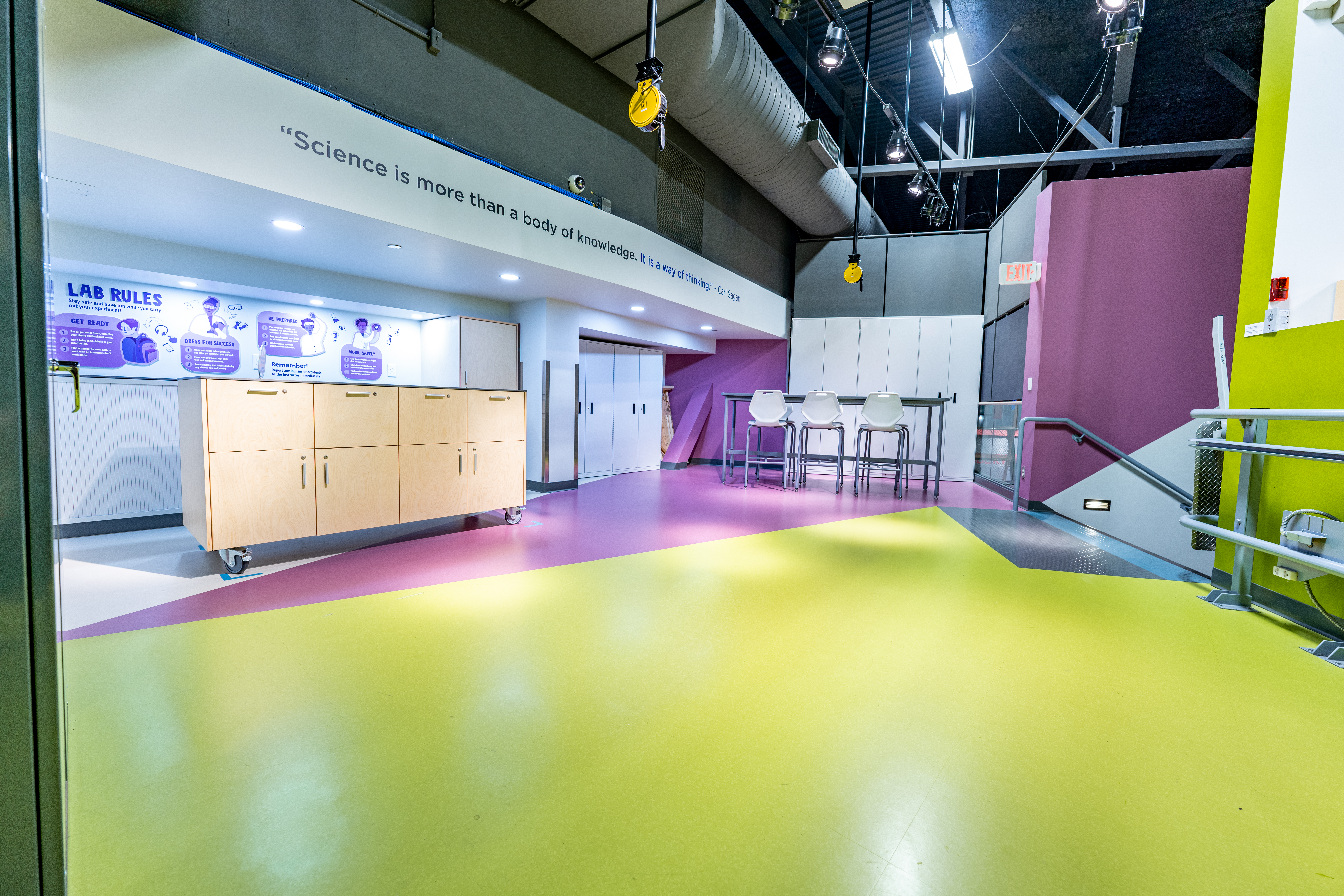 Location: Science World in Vancouver, Canada; Product/Colors: noraplan® sentica in Lime Green and Purple